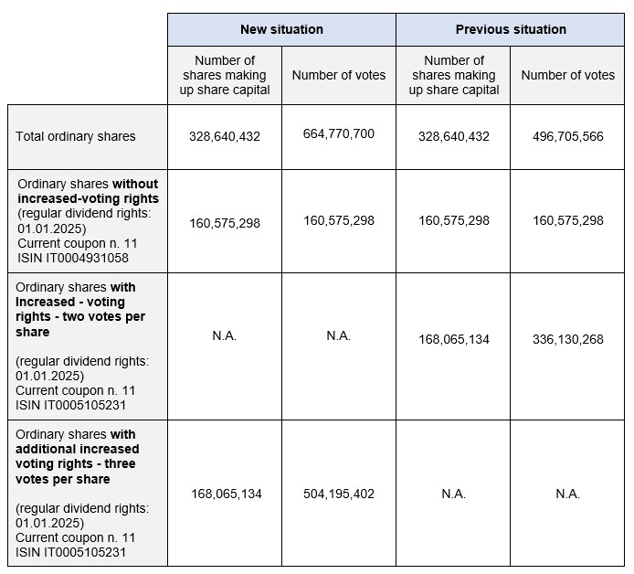For the sake of completeness, it is recalled that the Company's share capital is equal to Euro 19,920,679.32 divided into no. 328,640,432 ordinary shares, without par value.