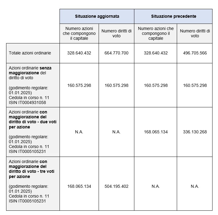 Si ricorda, per completezza, che il capitale sociale della Società ammonta ad Euro 19.920.679,32, diviso in numero 328.640.432 azioni ordinarie, prive di valore nominale.